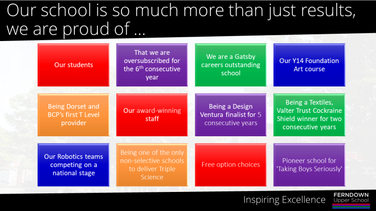 As you navigate your way around our site, I hope that it will give you a clear idea of our values and of the opportunities available to all who study here. Where everyone works together to make Ferndown a safe, happy and engaging place to learn.