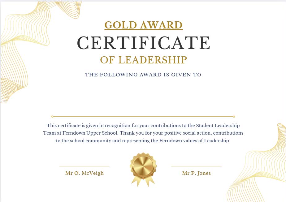 representation initiatives of the student leadership team - Gold Award – For students with sustained leadership